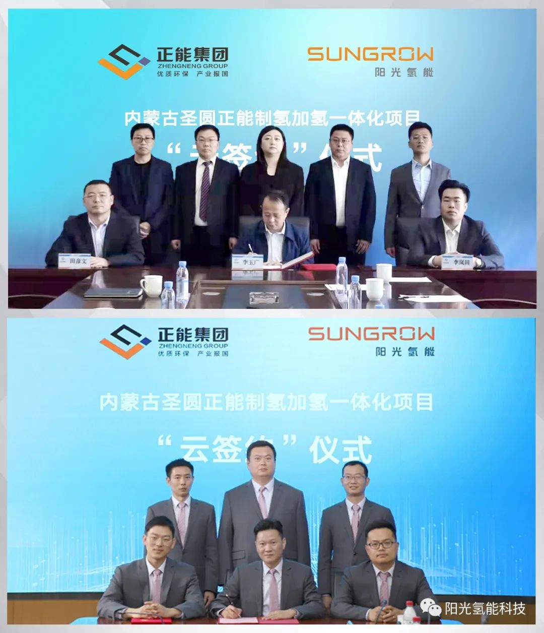 3月31日,陽光氫能與正能集團舉行合作協(xié)議“云簽約”儀式,深化“綠電+綠氫”領(lǐng)域合作,共同打造“內(nèi)蒙古圣圓正能制氫加氫一體化項目”。正能集團副董事長李玉廣、常務(wù)副總田彥文、圣圓伊政新能源總經(jīng)理王馨、正能氫能源科技有限公司總經(jīng)理李嵐田等領(lǐng)導,陽光電源副總裁兼氫能事業(yè)部總裁程程、氫能事業(yè)部營銷總經(jīng)理方偉等領(lǐng)導出席“云簽約”儀式。