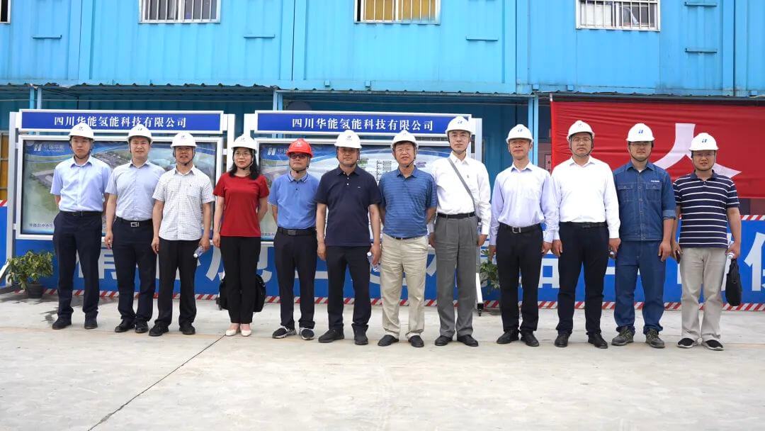 6月9日,清能院黨委書記、董事長李衛東、蒙東公司副總經理李樹學、股份公司生產環保部副主任蕭云志、北方公司副總工程師郭德才、蒙東公司審計部主任金玲等一行到華能彭州水電解制氫示范項目現場調研。