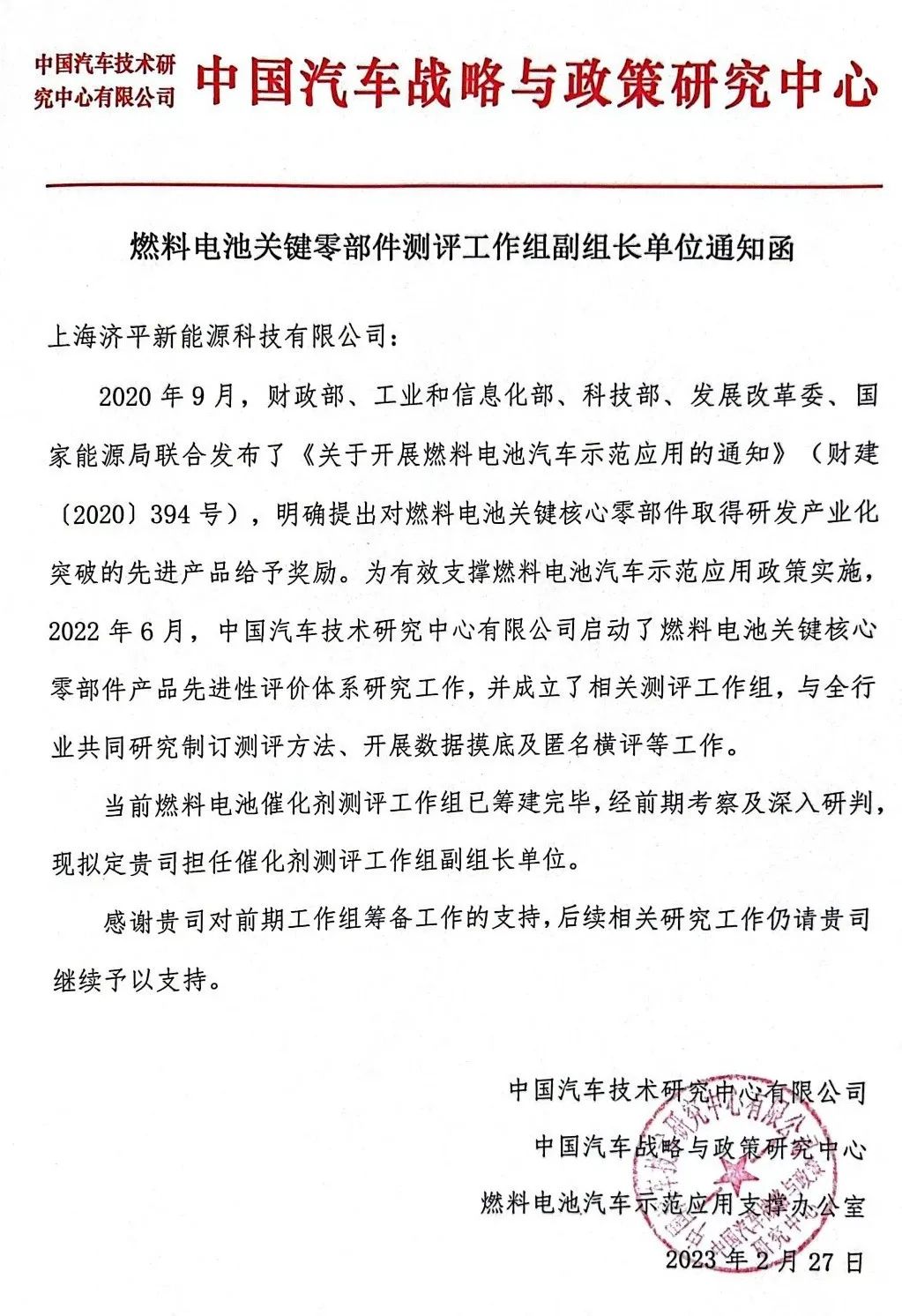 上海濟(jì)平新能源科技有限公司榮任中國(guó)汽車戰(zhàn)略與政策研究中心催化劑測(cè)評(píng)工作組副組長(zhǎng)單位,標(biāo)準(zhǔn)制定,行業(yè)引領(lǐng),共譜燃料電池催化劑標(biāo)準(zhǔn)化新篇章,構(gòu)建產(chǎn)業(yè)共贏的商業(yè)成功標(biāo)準(zhǔn)體系建設(shè),探討催化劑測(cè)評(píng)工作的核心問題,助推燃料電池催化劑邁入“標(biāo)準(zhǔn)化”時(shí)代。